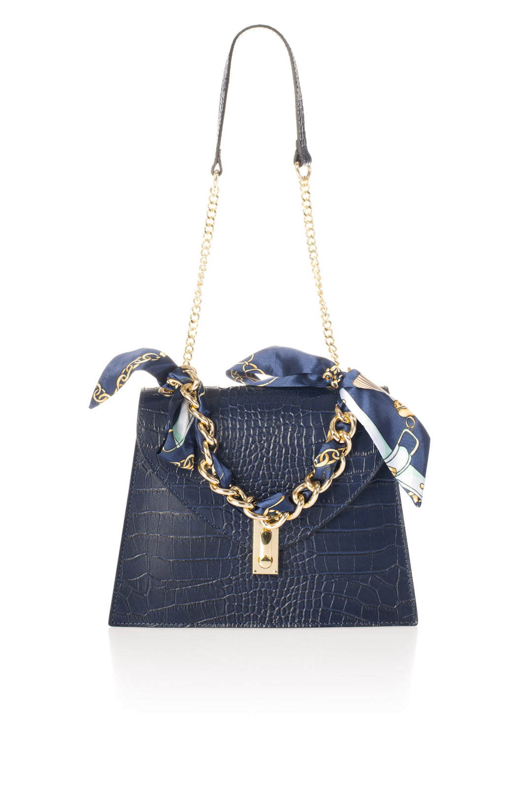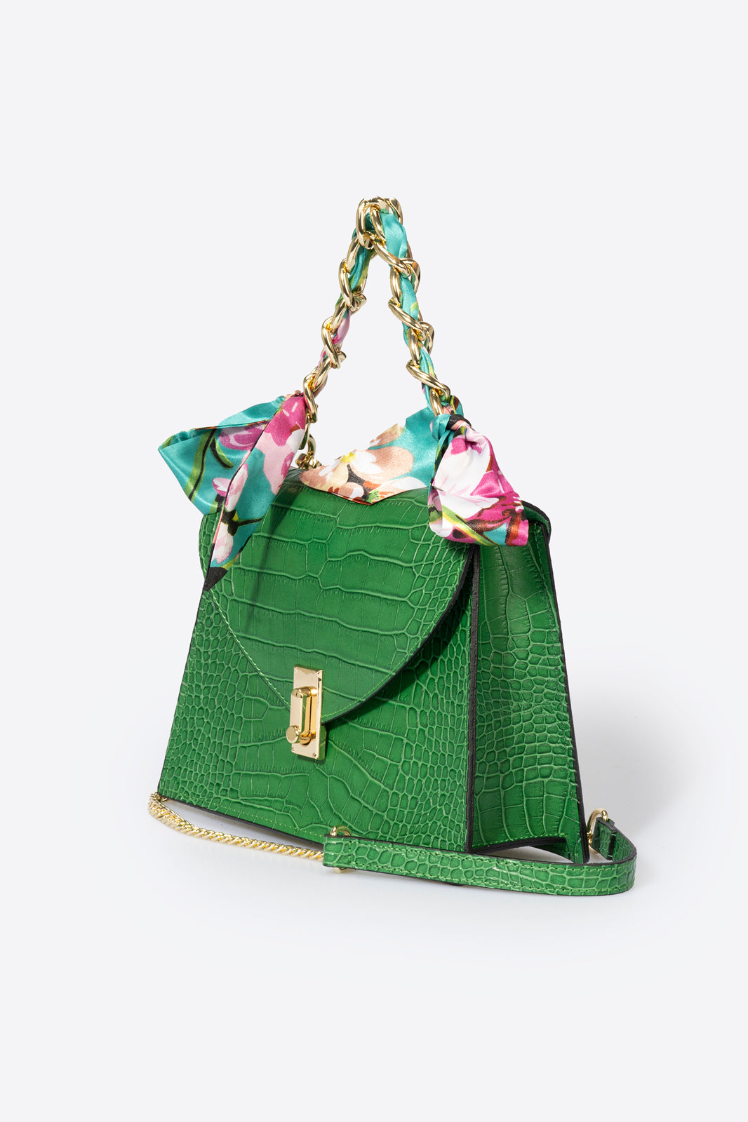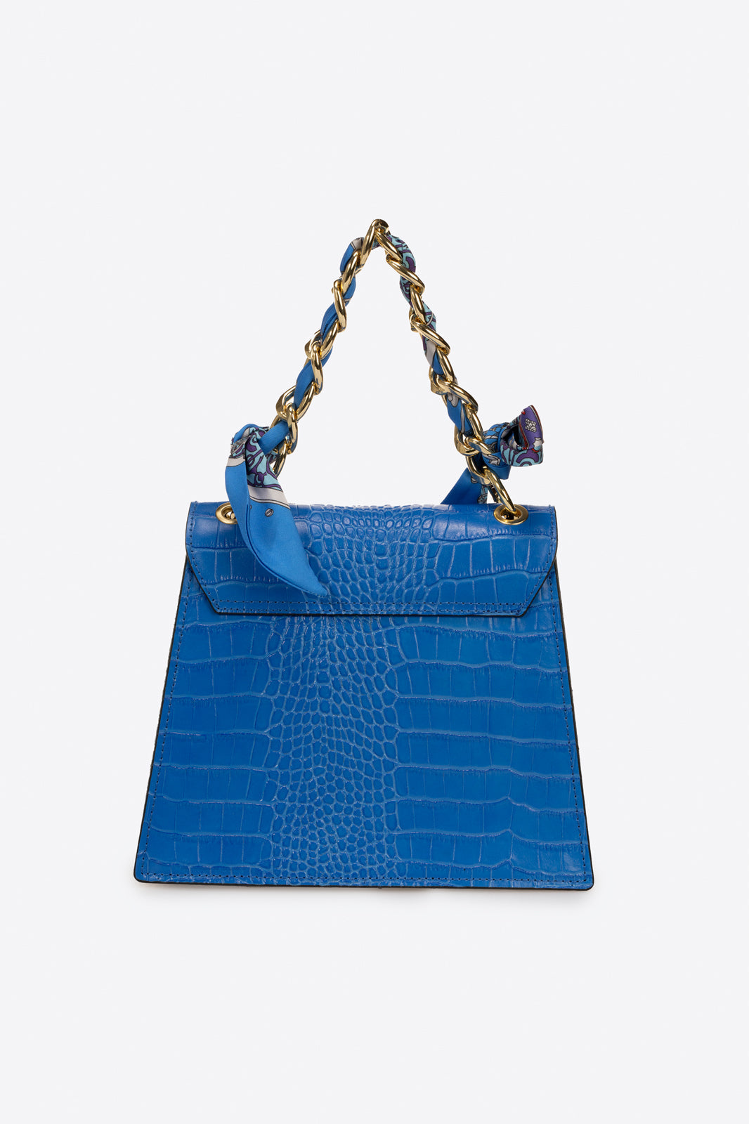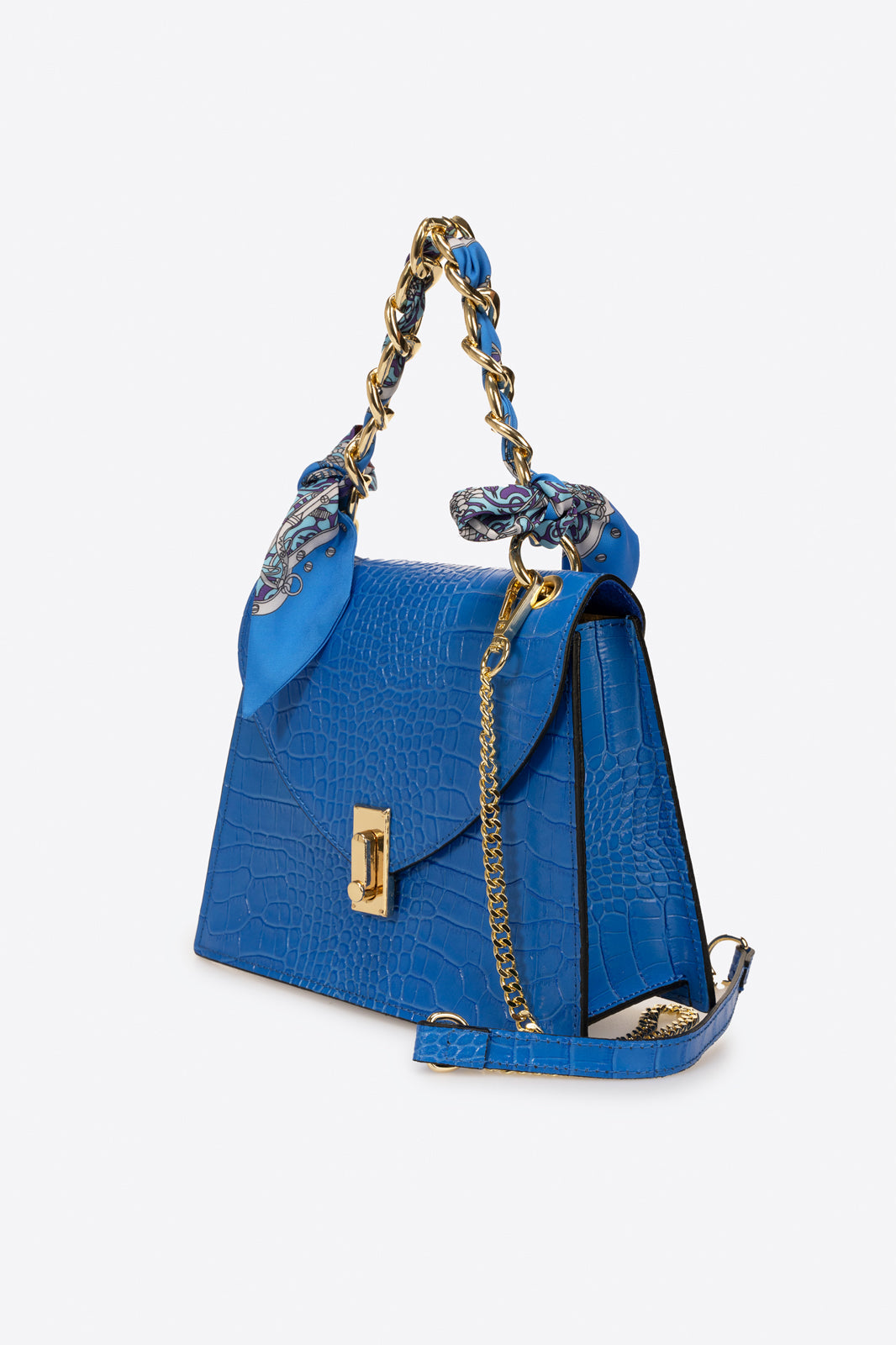 Quilted construction in crocco embossed calfskin . Designed with one chain top handle, detachable/adjustable shoulder strap 120 cm, flap closure, magnet snap lock, interior pocket. This bag is loved by any woman who wants a sophisticated, compact and always fashionable object.. Made in Italy product.
