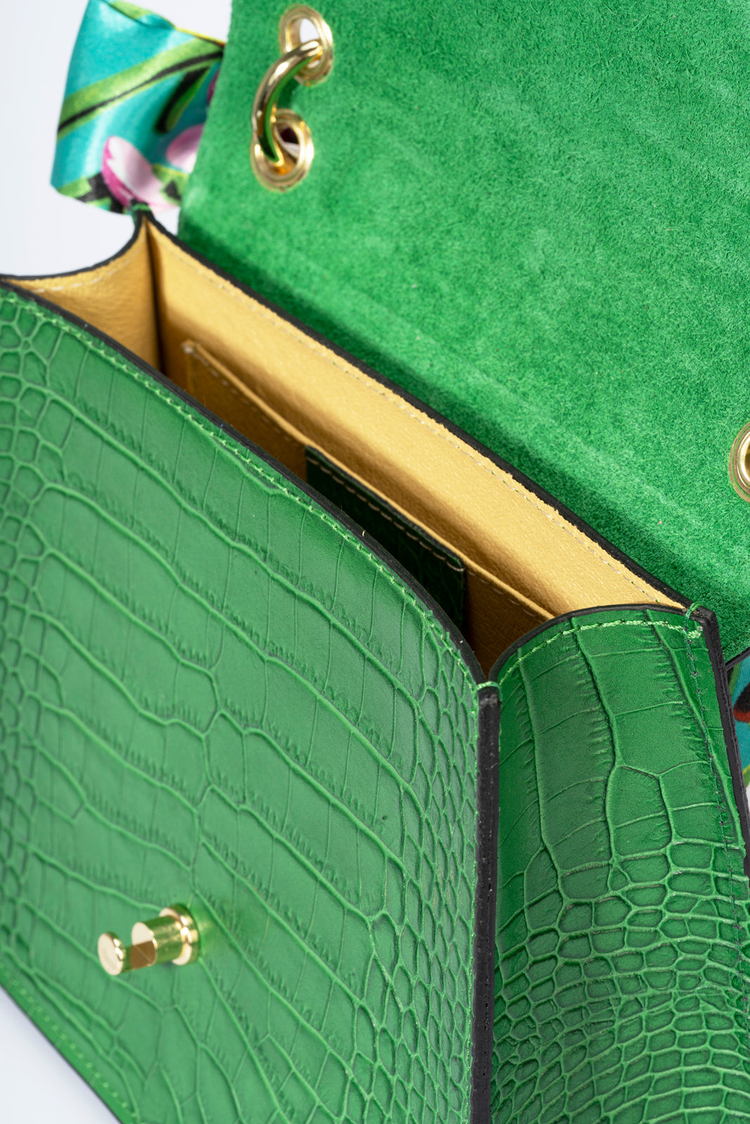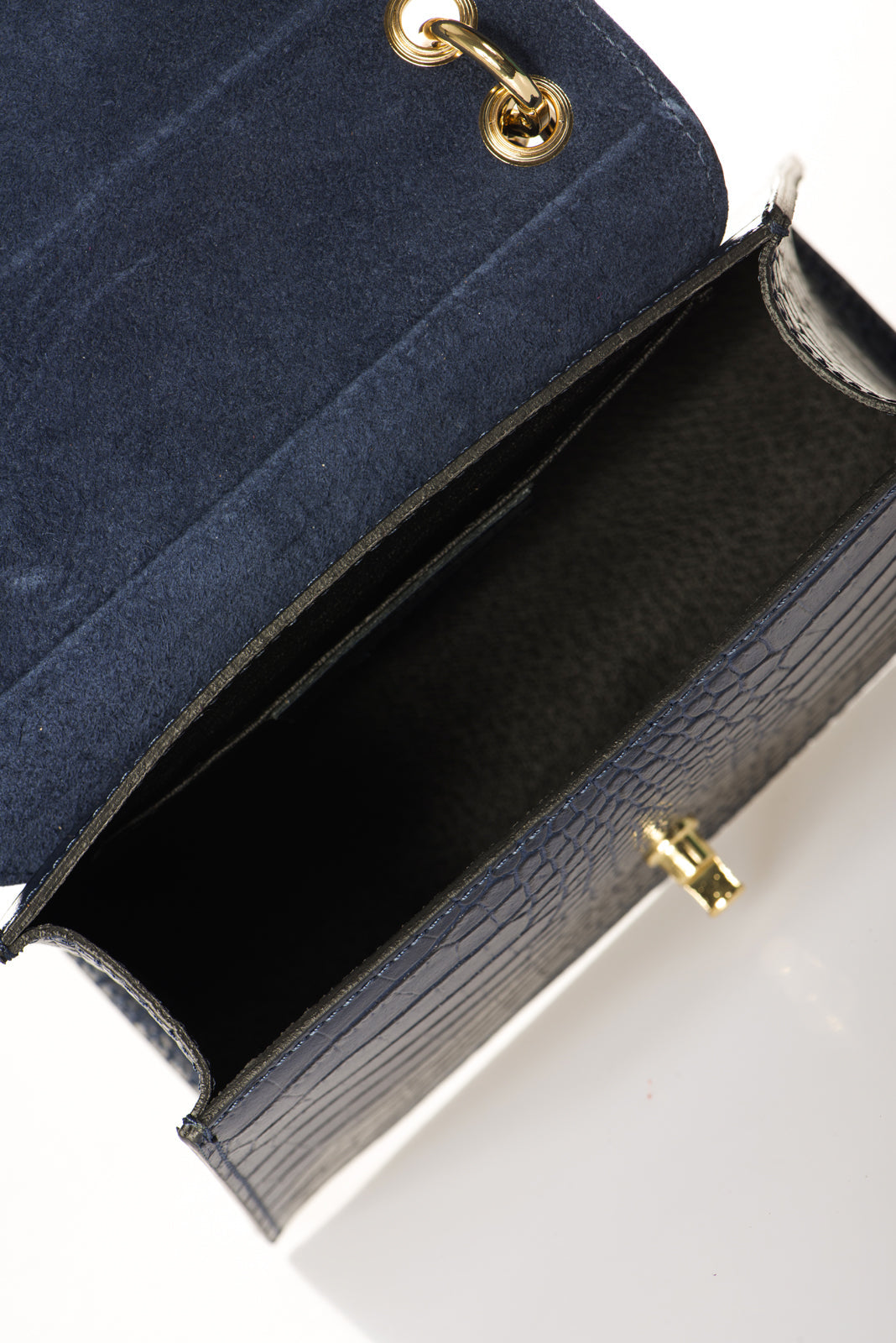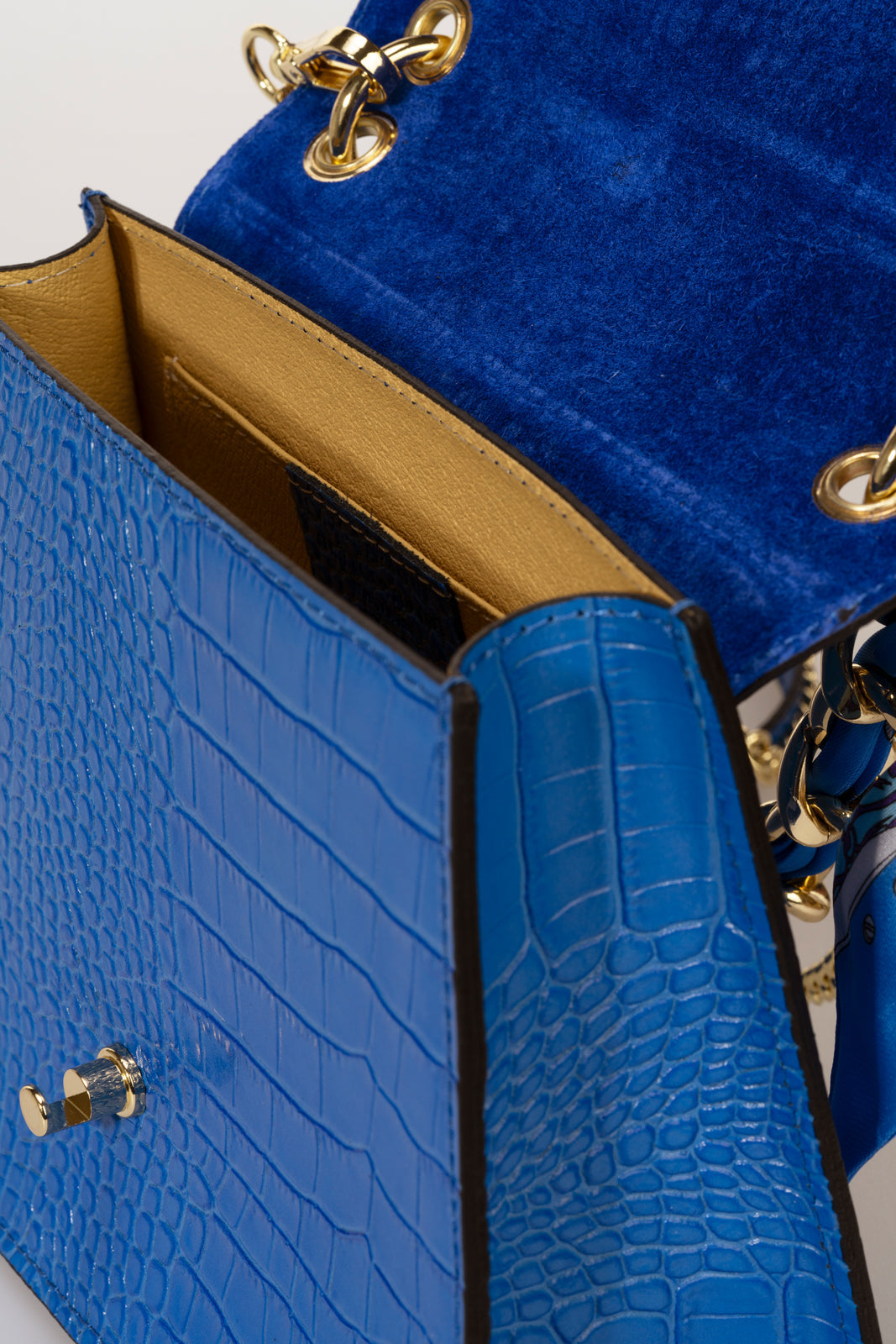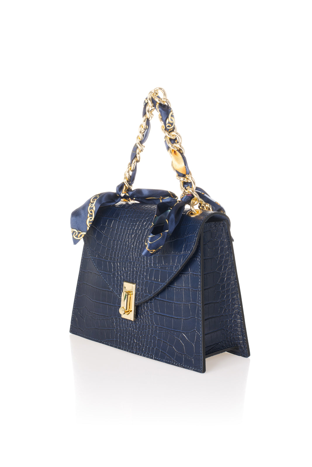 Quilted construction in crocco embossed calfskin . Designed with one chain top handle, detachable/adjustable shoulder strap 120 cm, flap closure, magnet snap lock, interior pocket. This bag is loved by any woman who wants a sophisticated, compact and always fashionable object.. Made in Italy product.