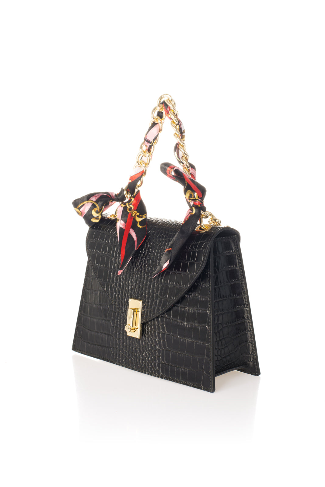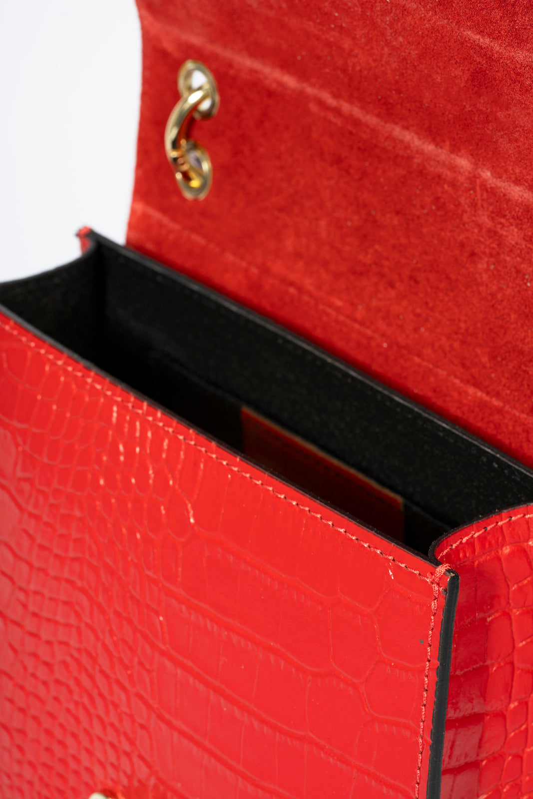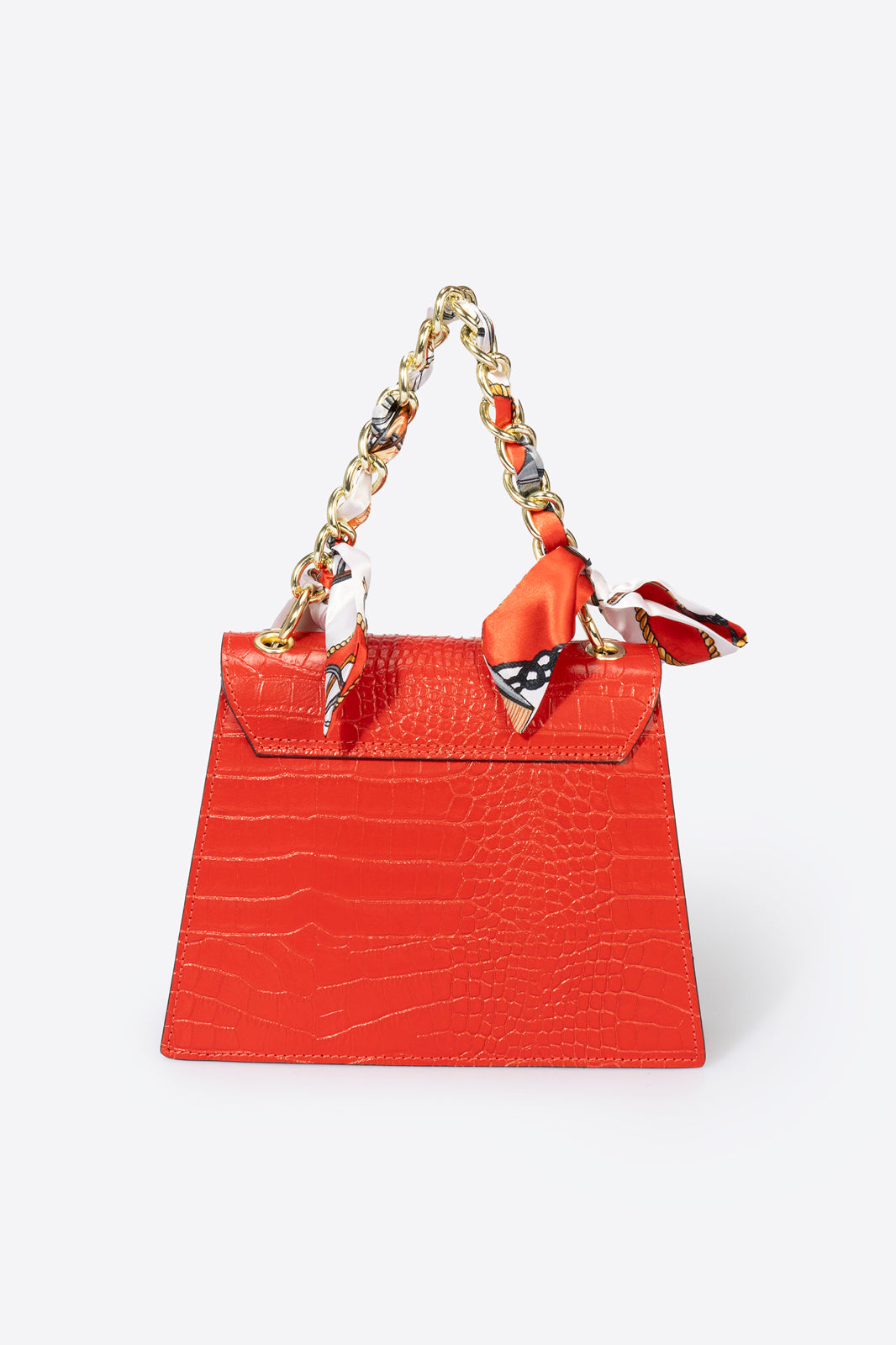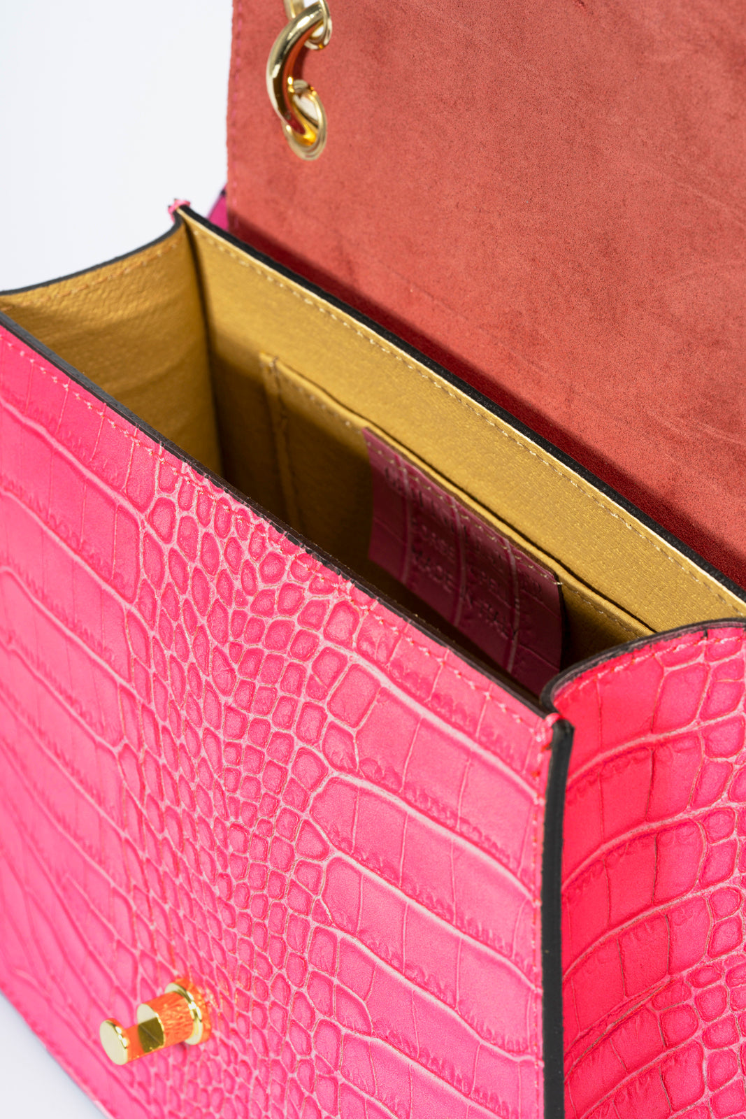 Quilted construction in crocco embossed calfskin . Designed with one chain top handle, detachable/adjustable shoulder strap 120 cm, flap closure, magnet snap lock, interior pocket. This bag is loved by any woman who wants a sophisticated, compact and always fashionable object.. Made in Italy product.