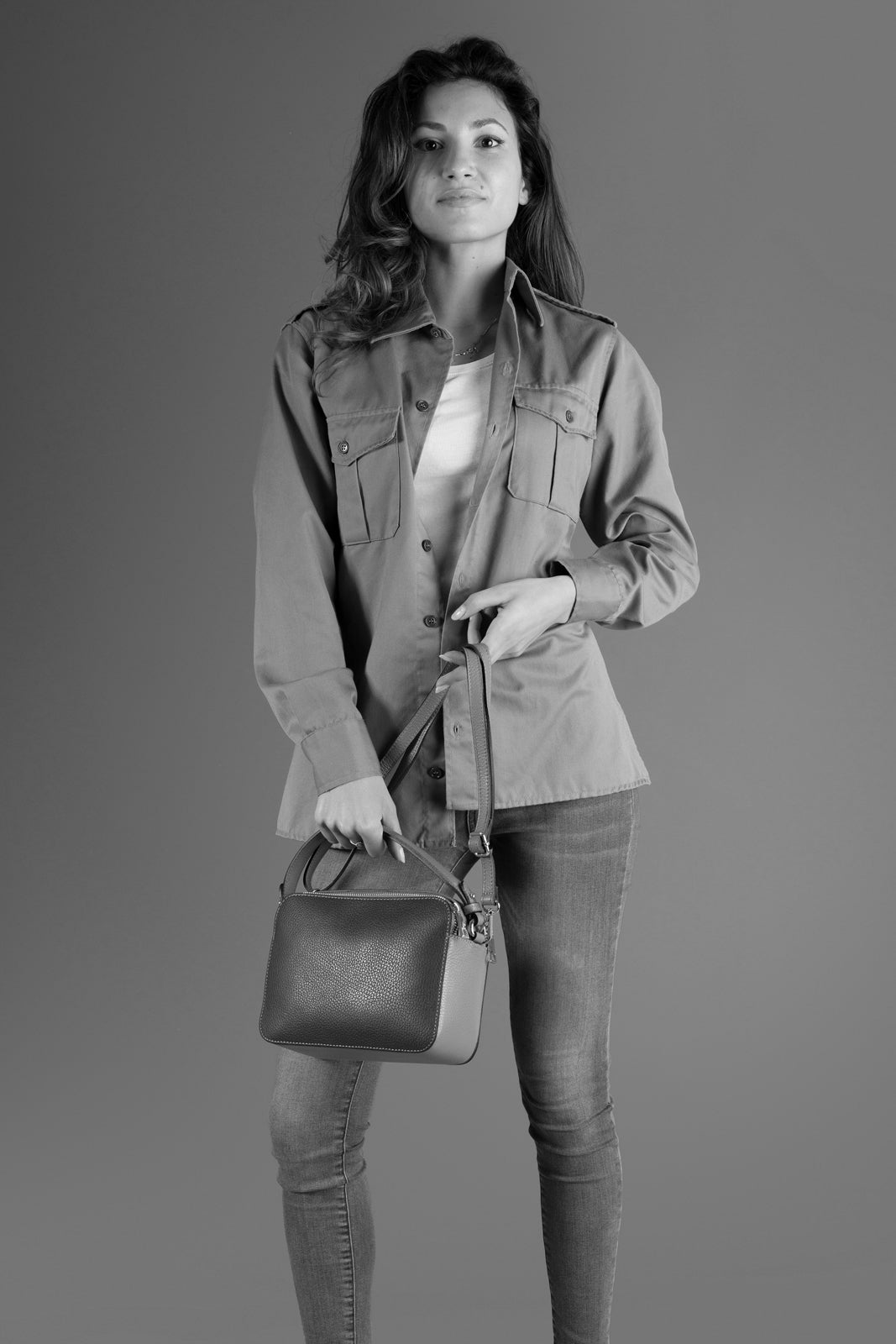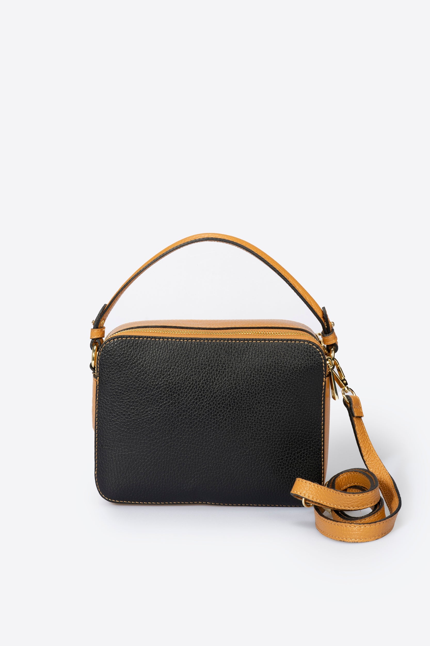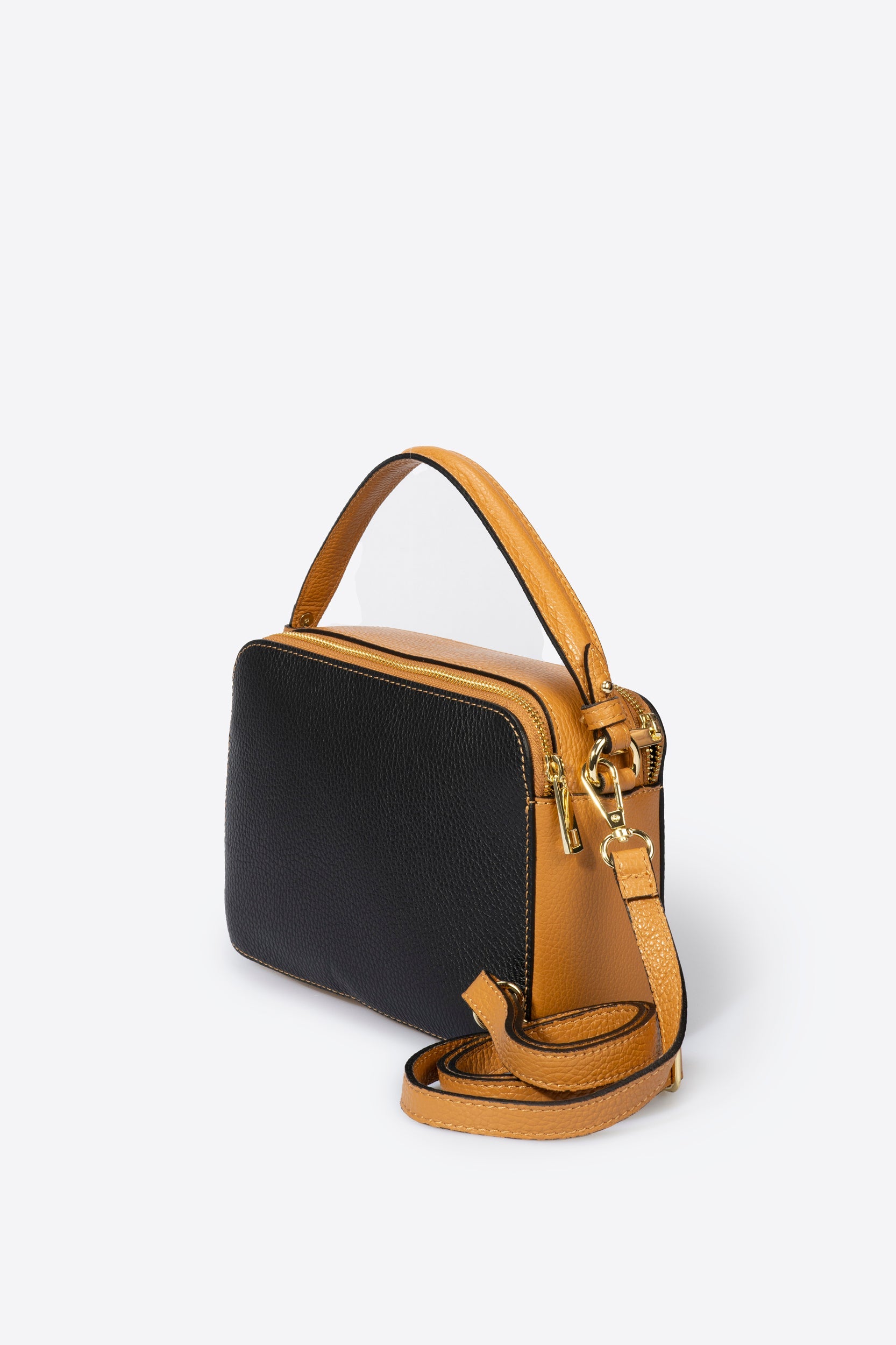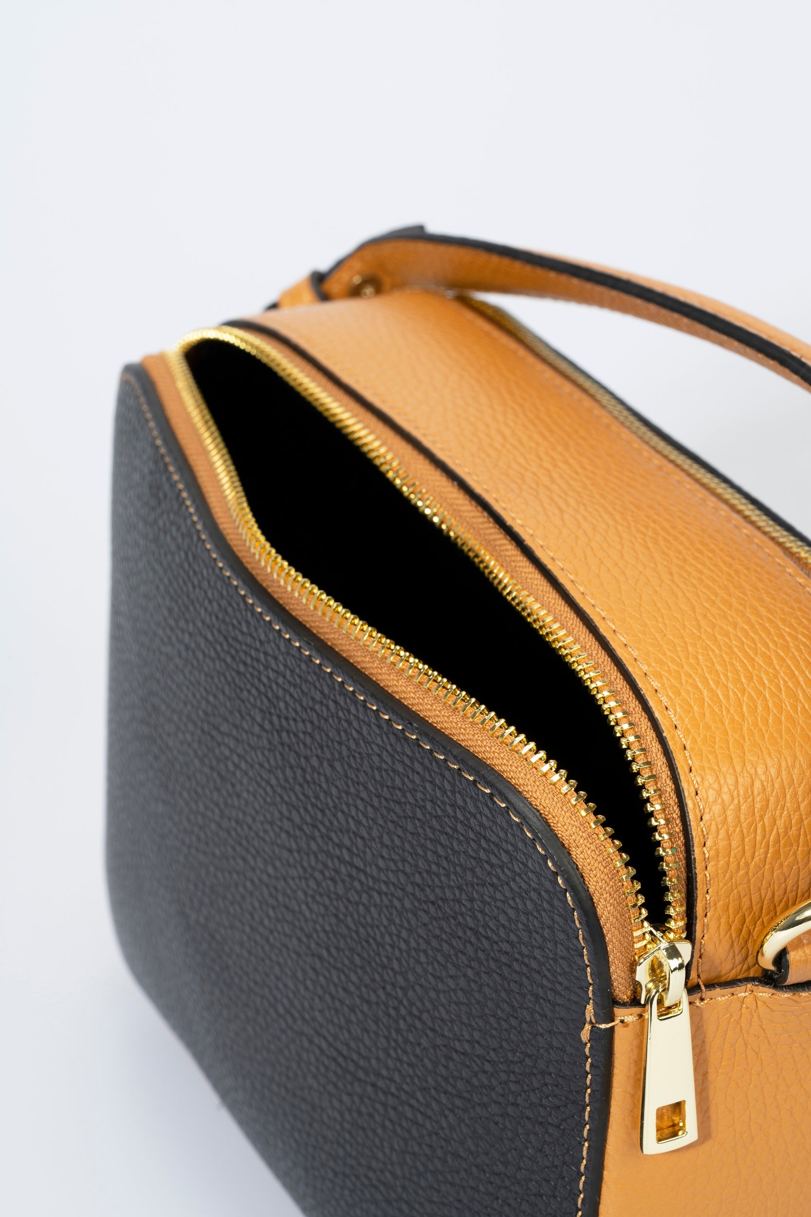 Women's handbag made of dollaro leather, with one top handle, detachable shoulder strap 120 cm, top zipper closure and interior zip pocket. A perfect balance between utility, durability and design, this round shaped bag represents a unique and original fashion style. It can be worn with the upper handle for a formal dinner or on the shoulder with the strap for a day in the park.