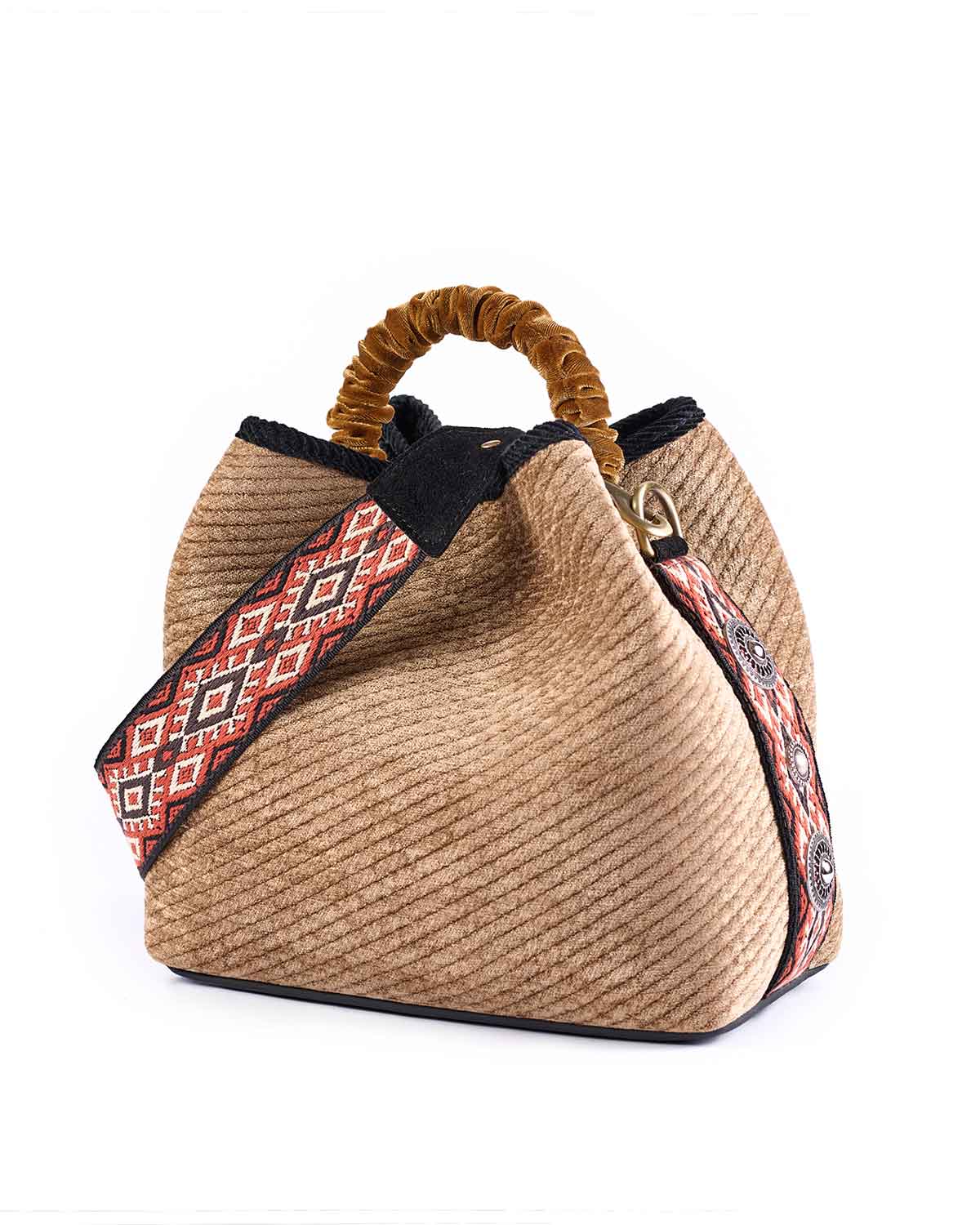 Coral Stone is a bucket bag made of velvet crafted by Viamailbag.