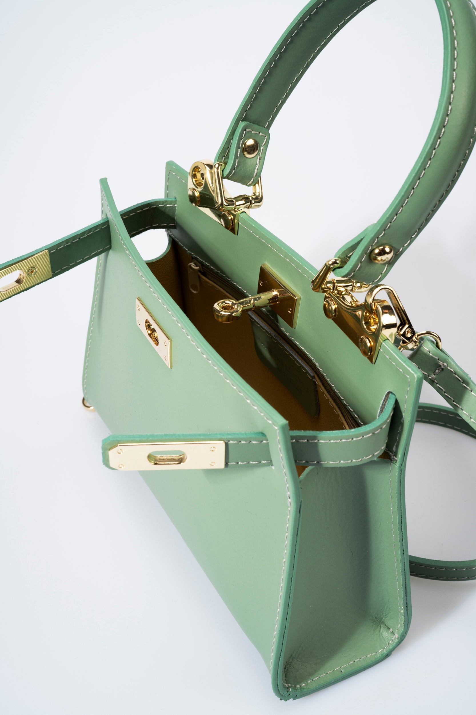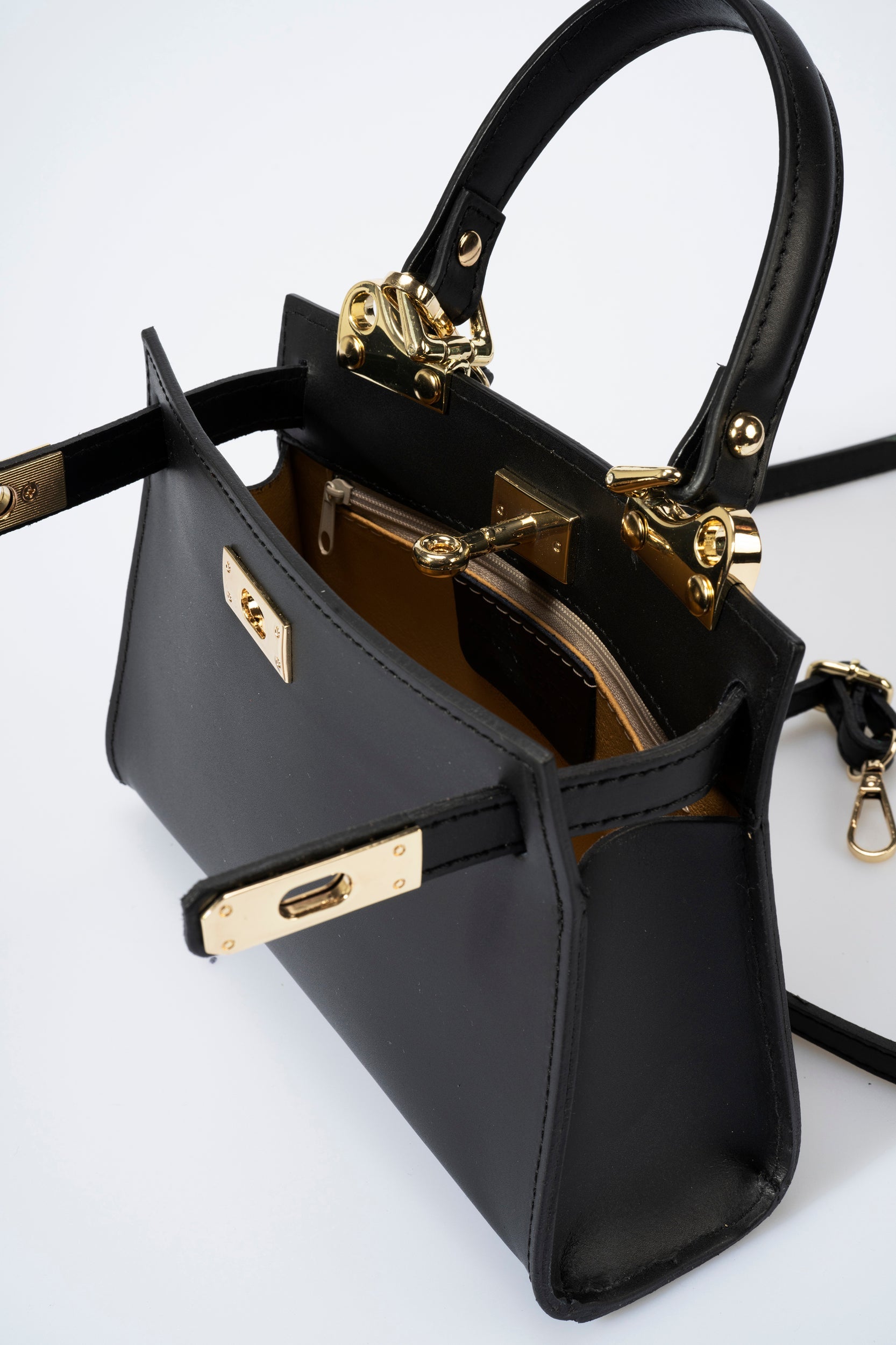 One top handle. Detachable and adjustable shoulder strap 120 cm. Twist lock closure. Interior pocket.