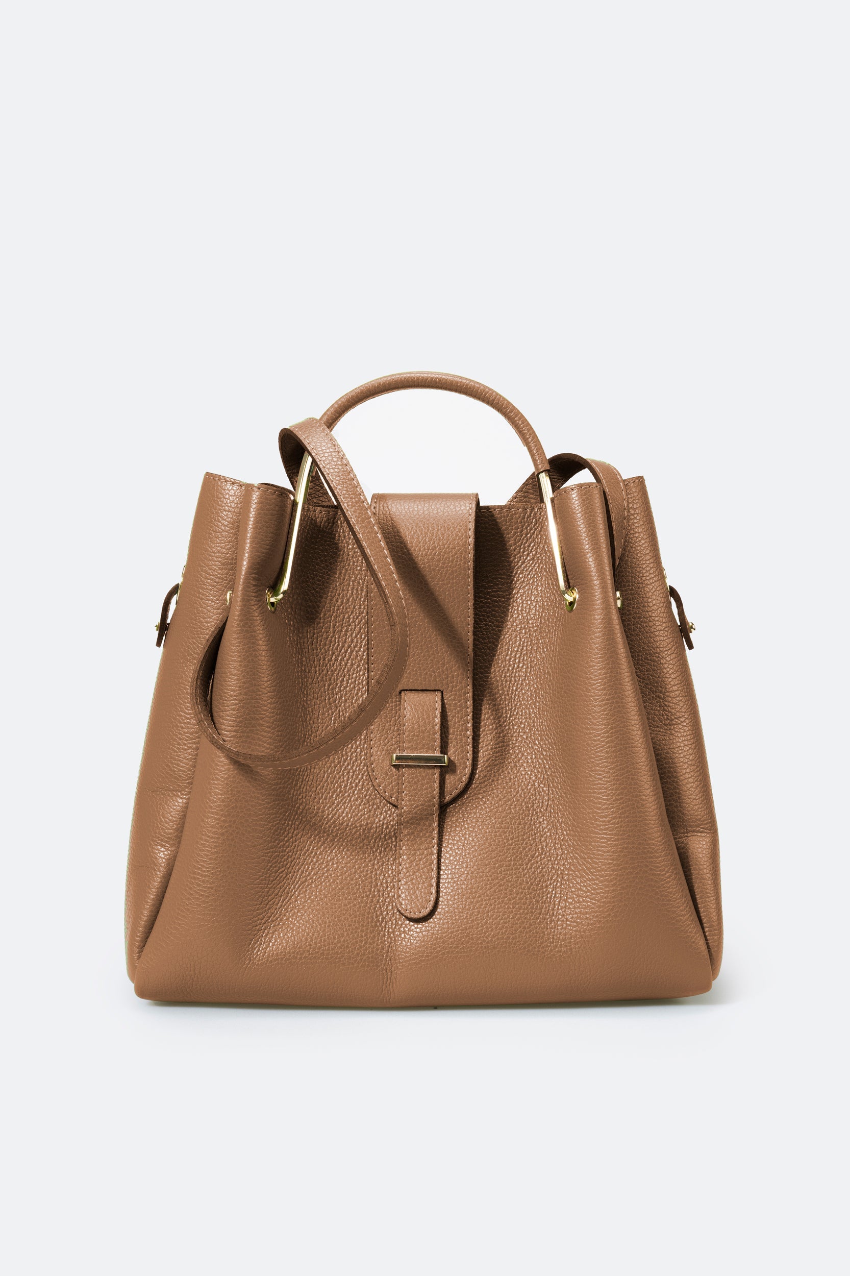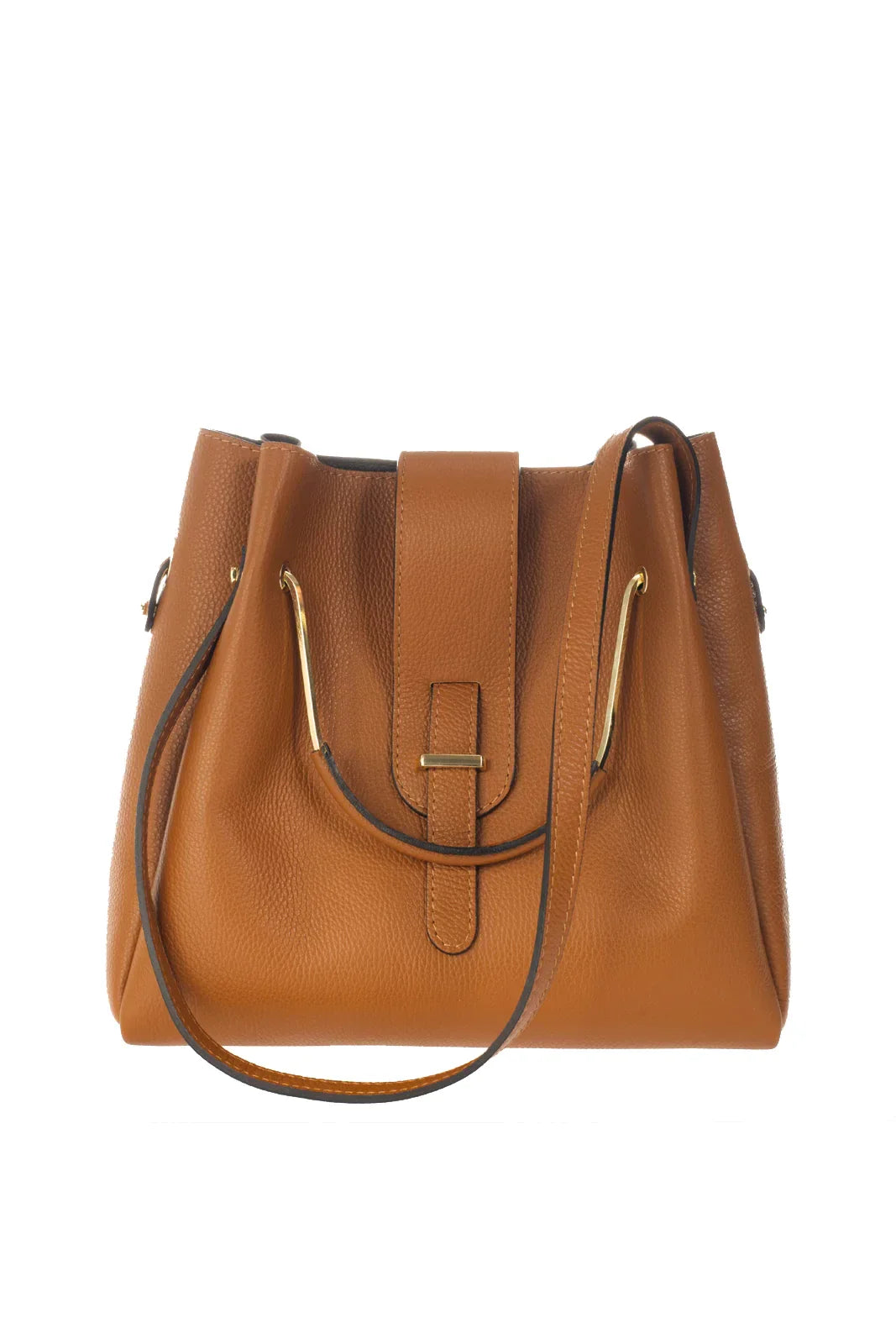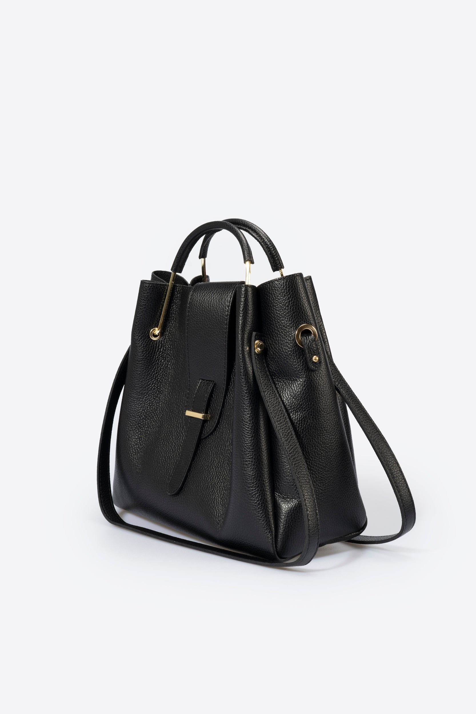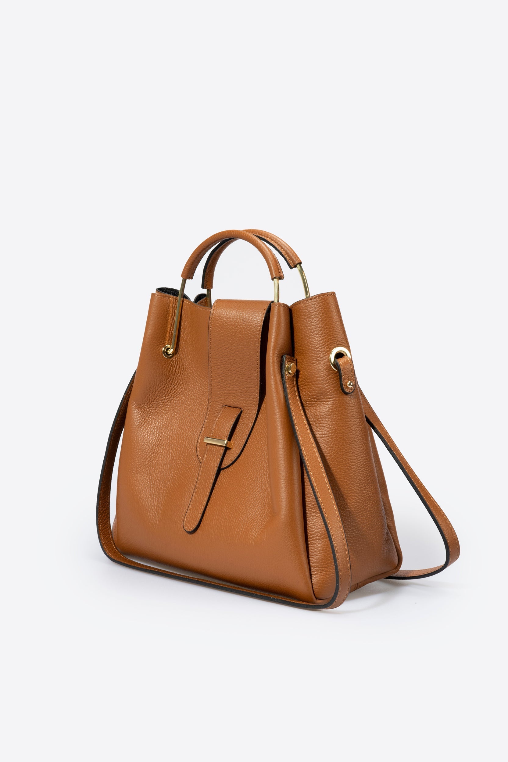 Top handle bag for women, made of grain leather leather with front flap closure, fixed shoulder straps, interior removable bag with zip clousure. Combine the useful with the pleasant and choose this bag if you want a practical and spacious handbag that follows the latest fashion trends.