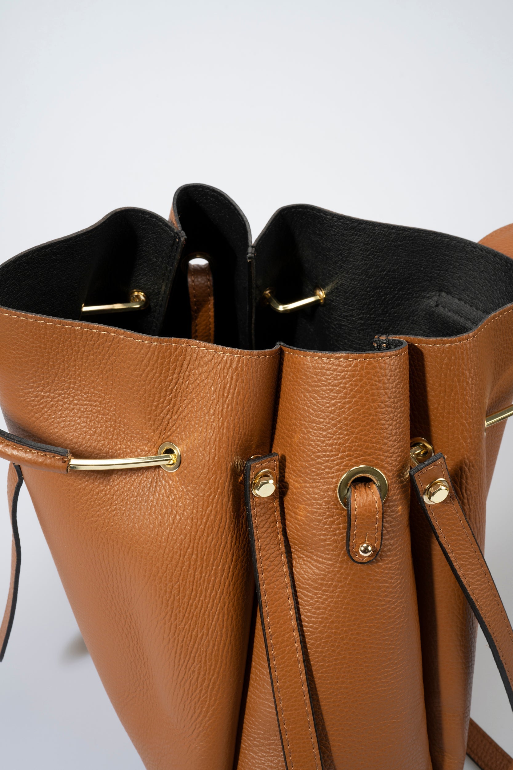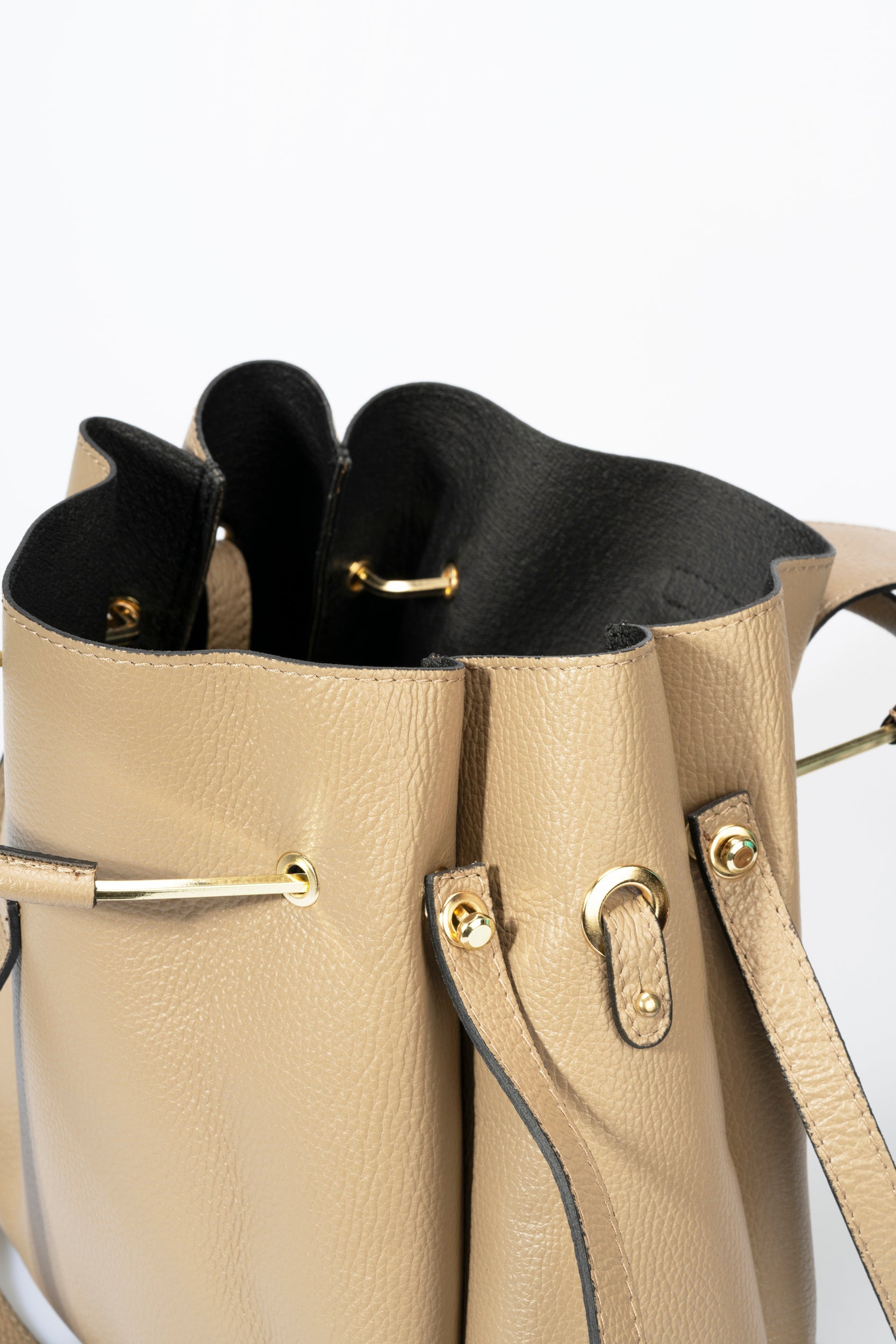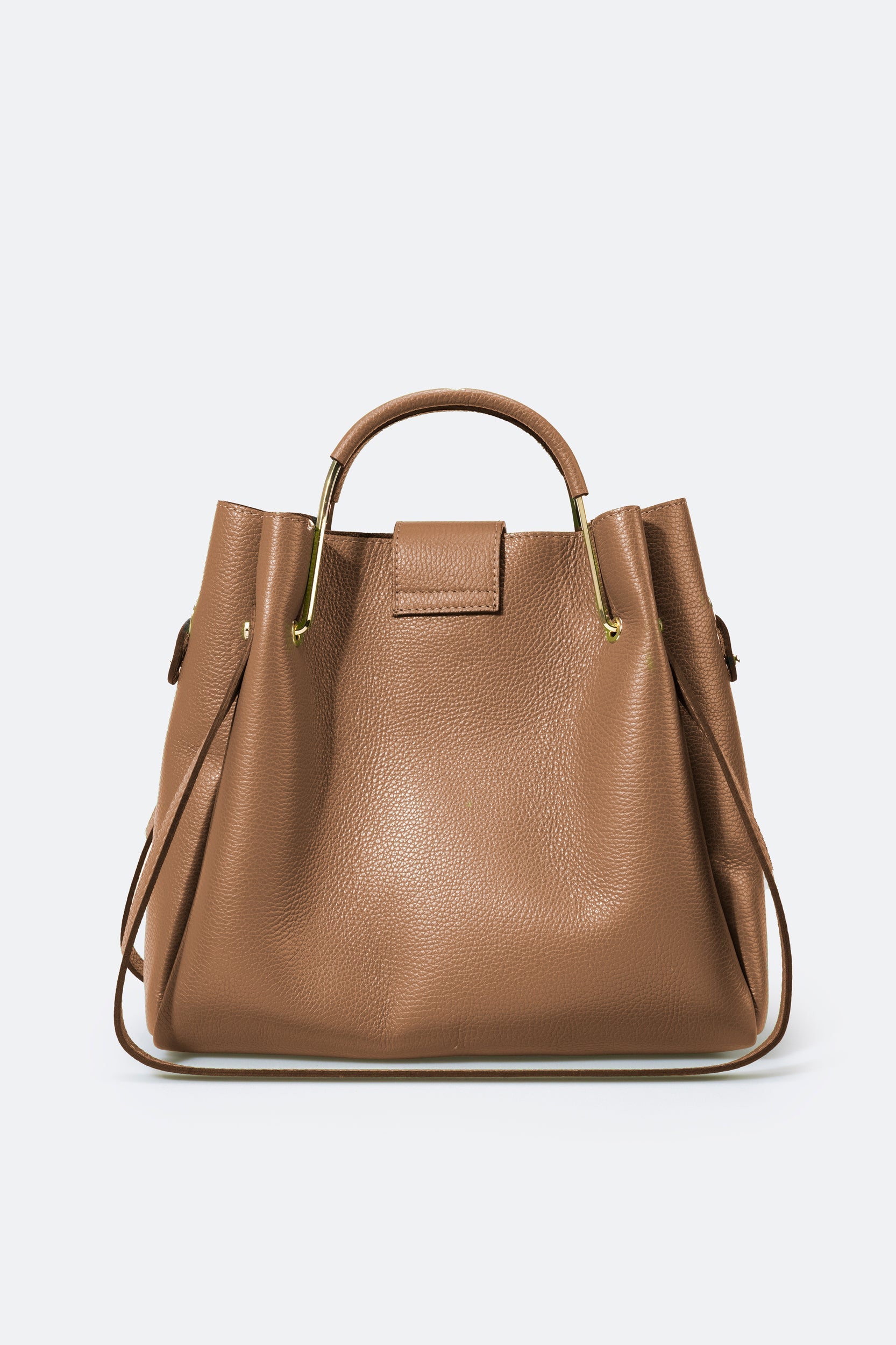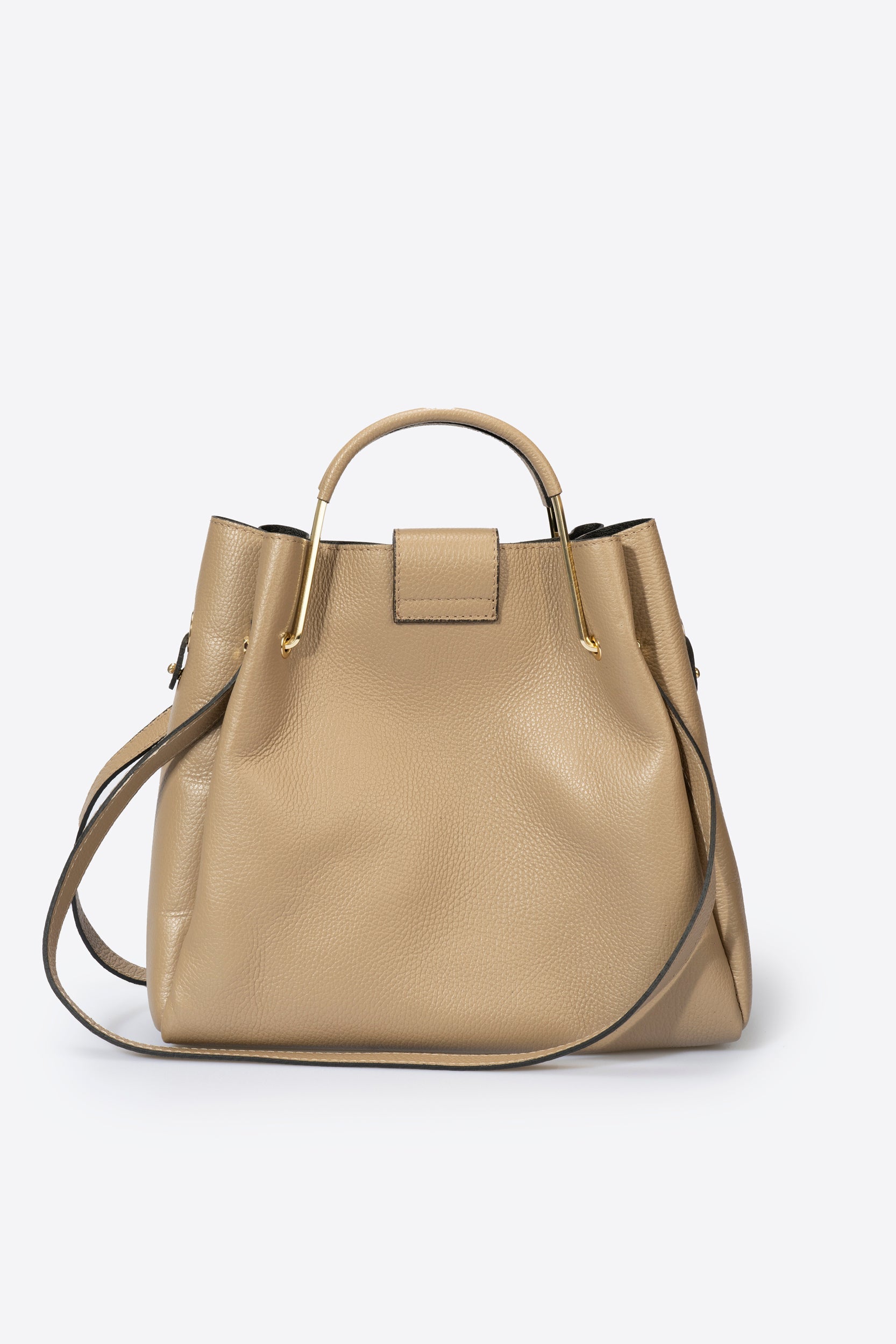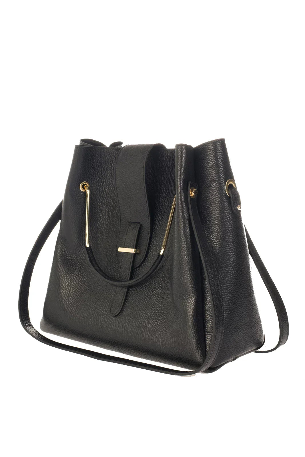 Top handle bag for women, made of grain leather leather with front flap closure, fixed shoulder straps, interior removable bag with zip clousure. Combine the useful with the pleasant and choose this bag if you want a practical and spacious handbag that follows the latest fashion trends.