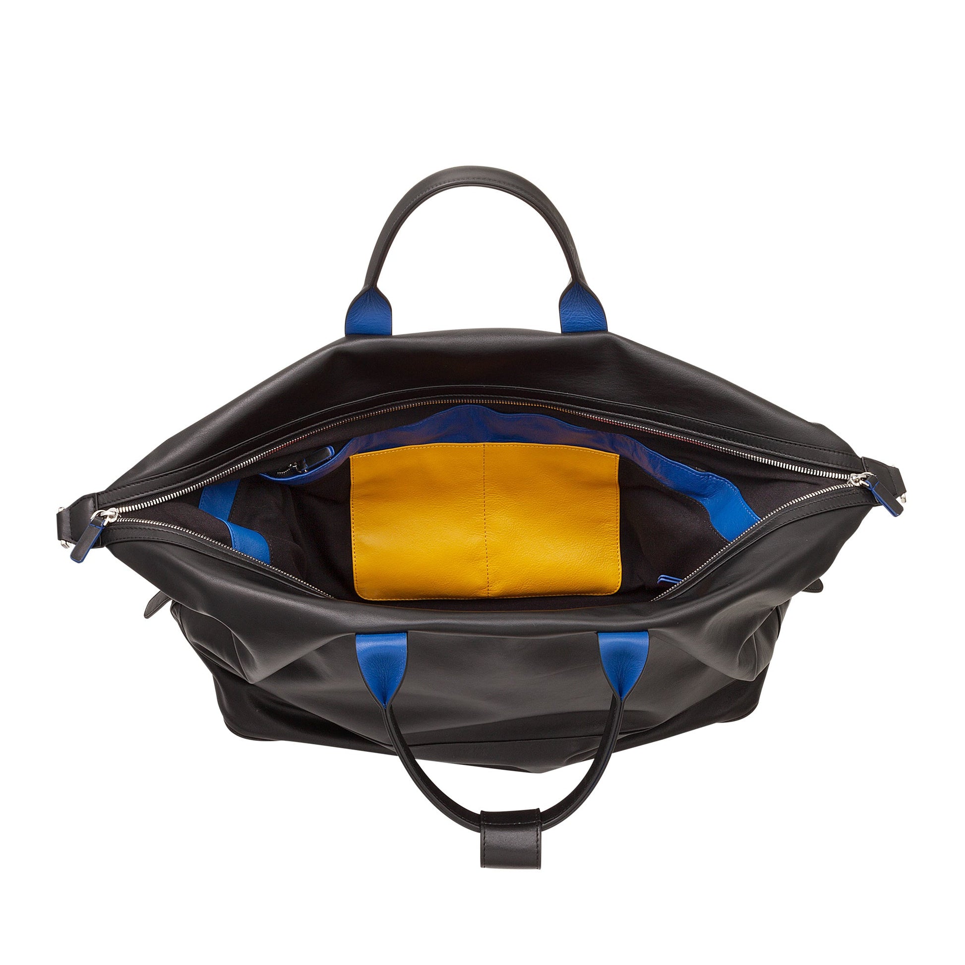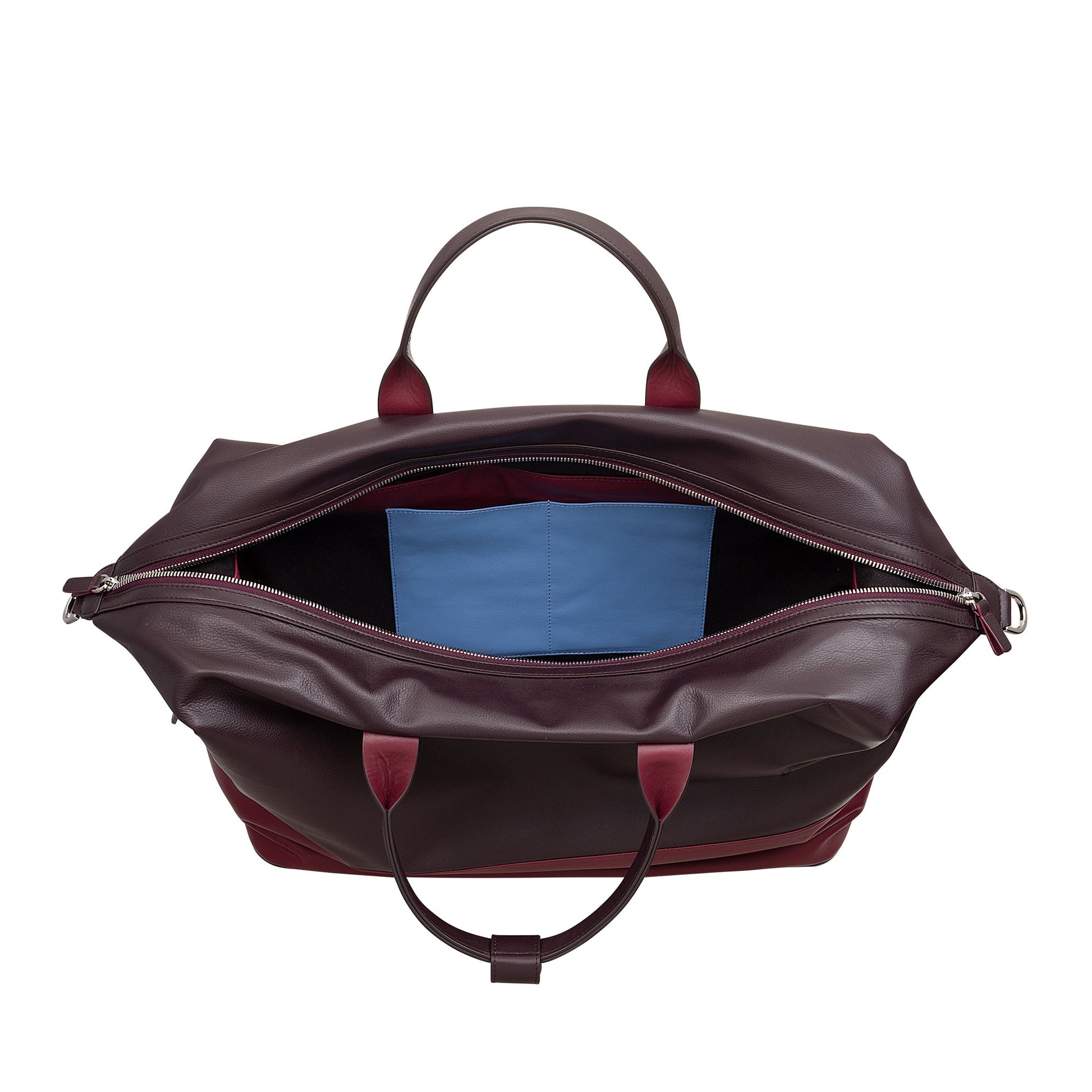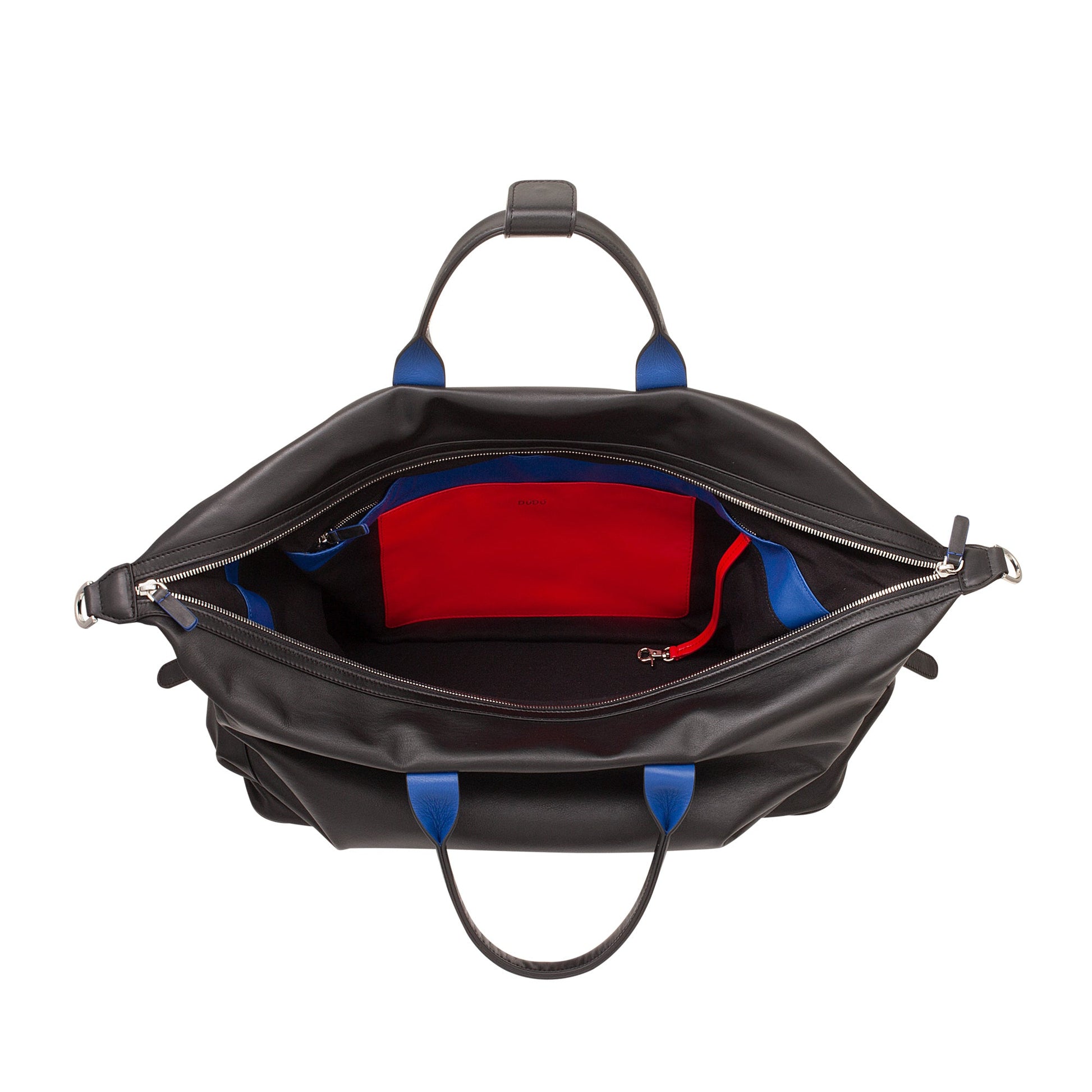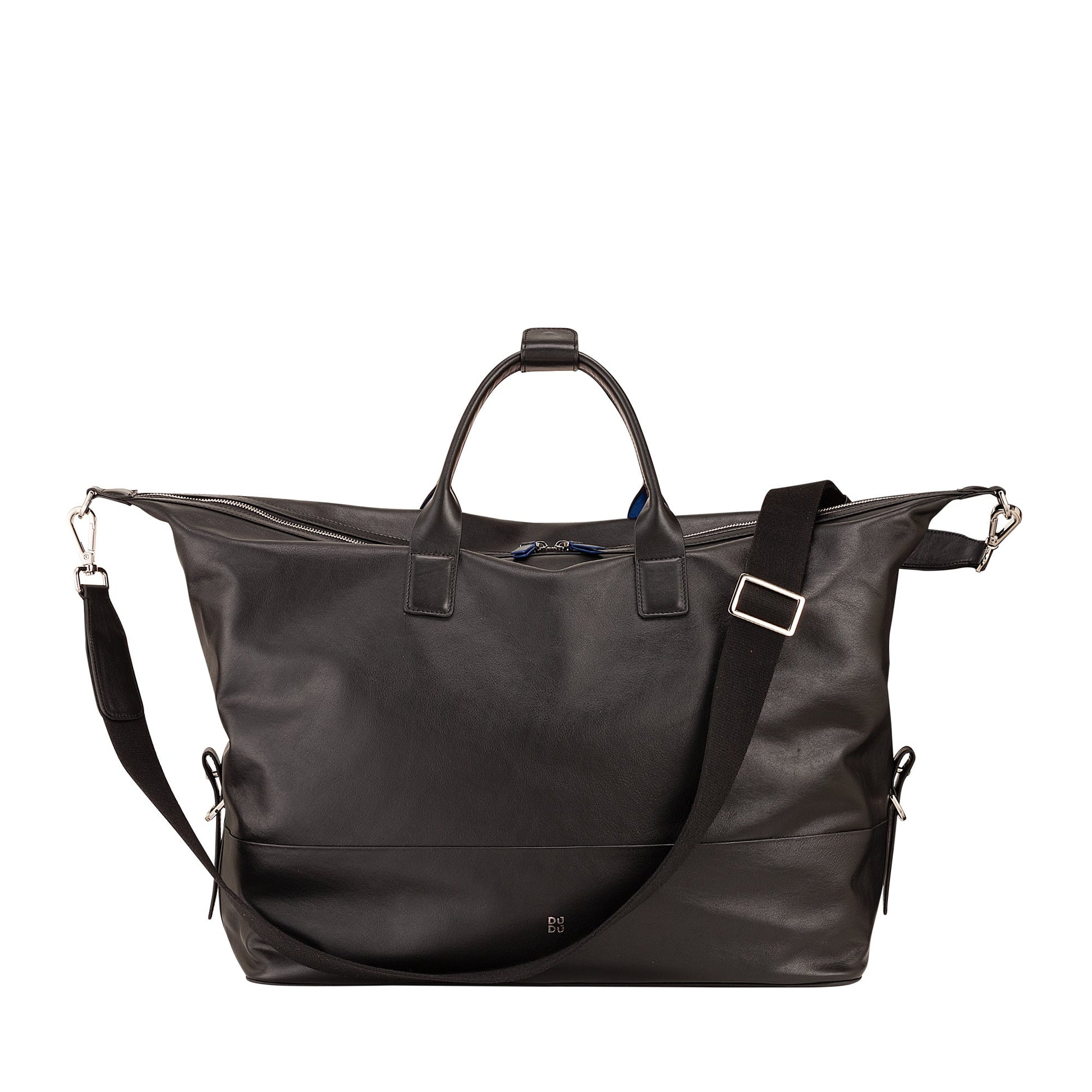 Brand: DuDu® Material: Calfskin Nappa leather full grain Dimension: 43 x 31 x 21 cm, Handles height: 13 cm, Shoulder strap length: 145 cm Weight: 1,8 kg Type: Unisex General structure: 3 inner pockets, 1 key hook and 2 inner pockets with zip Available colours: Black, Navy, Burgundy. All multicolour Country of origin: India