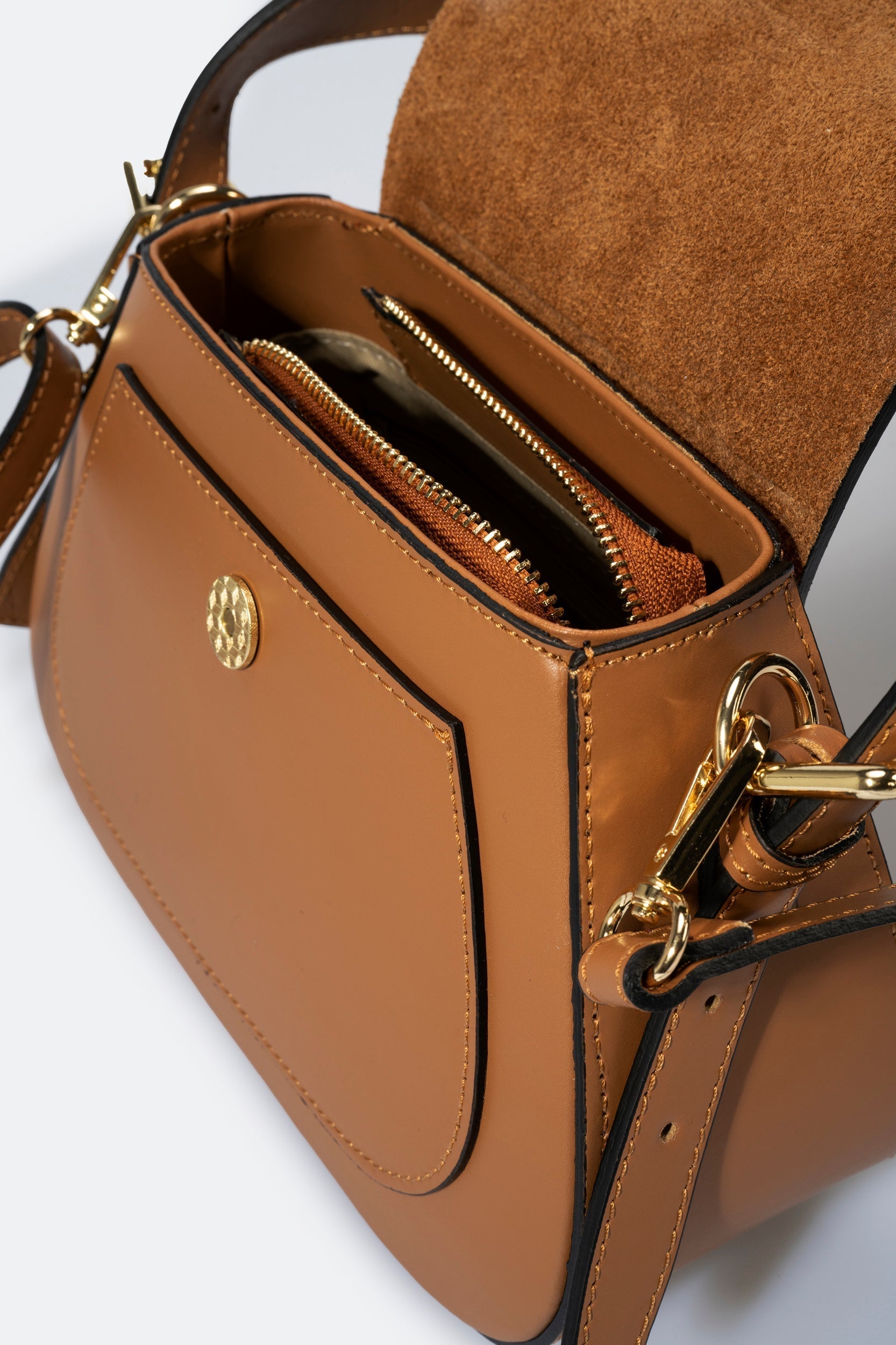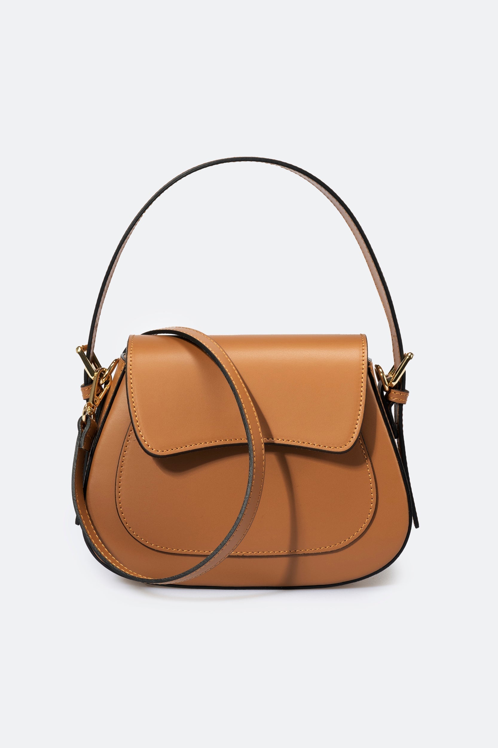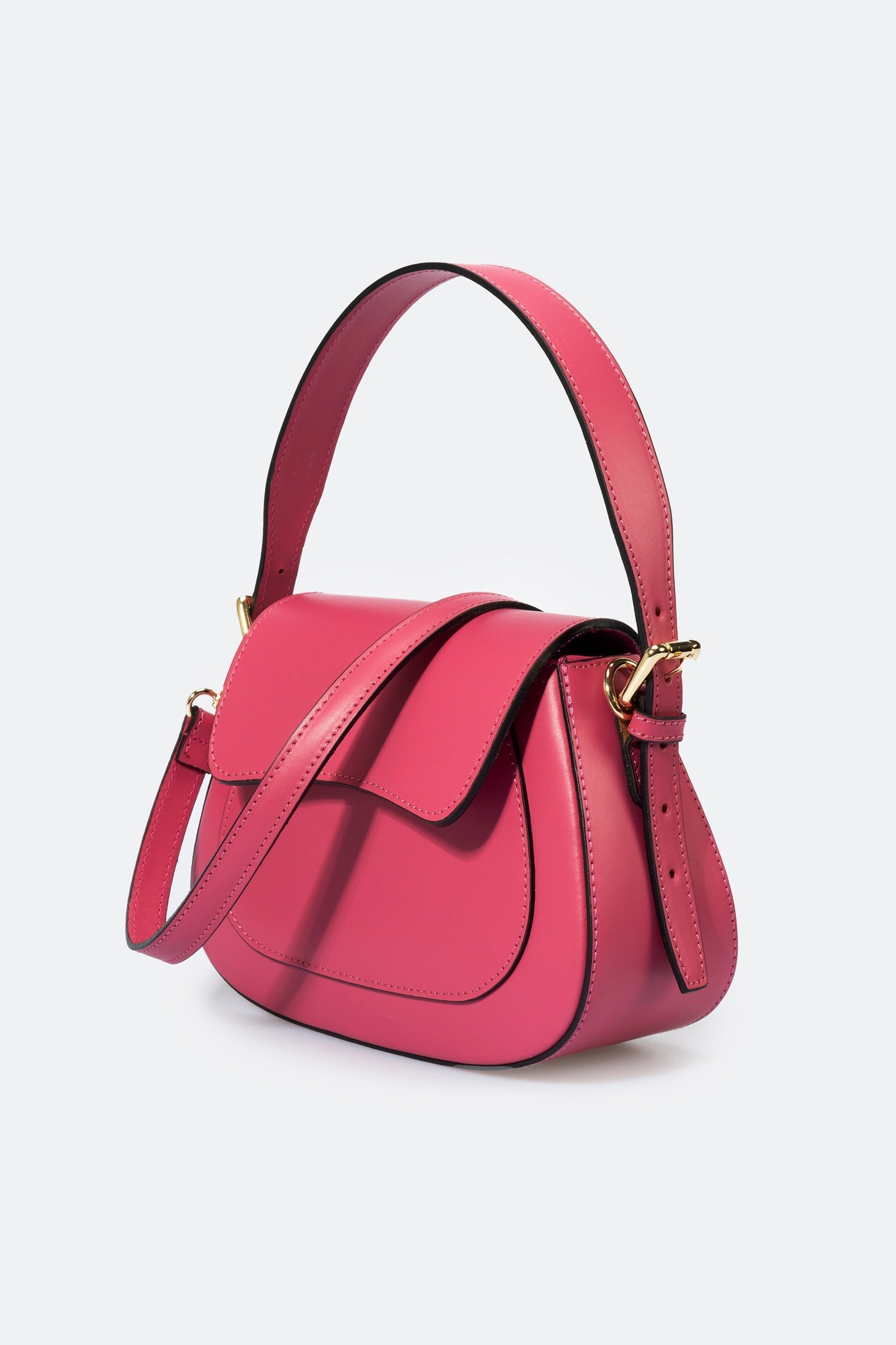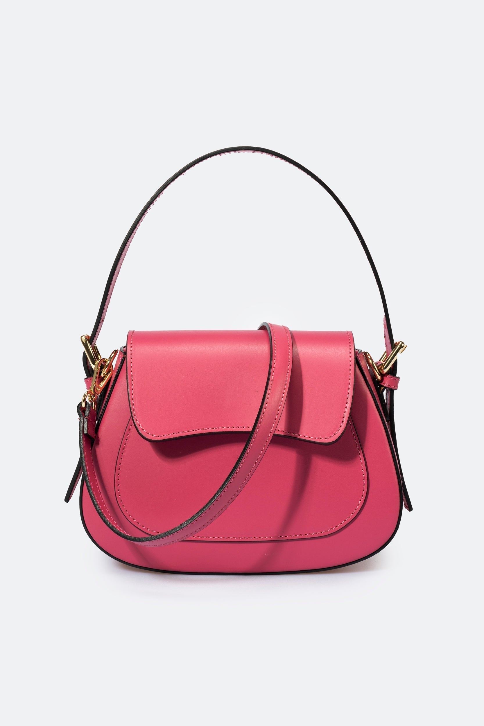 Women's top handle. Detachable and adjustable shoulder strap 120 cm. Flap closure. Magnetic closure. Zip cloure. Front pocket. Interior pocket. Gold finishes. Strap drop 17 cm. This bag is loved by any woman who wants a sophisticated, compact and always fashionable object. Wear it boldly. Product made in Italy.