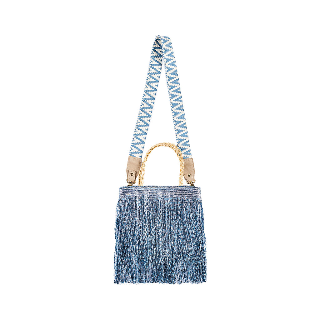 Kos Glitter is a crossbody bag made in laminated raffia in the workshop of Viamailbag in Tuscany.