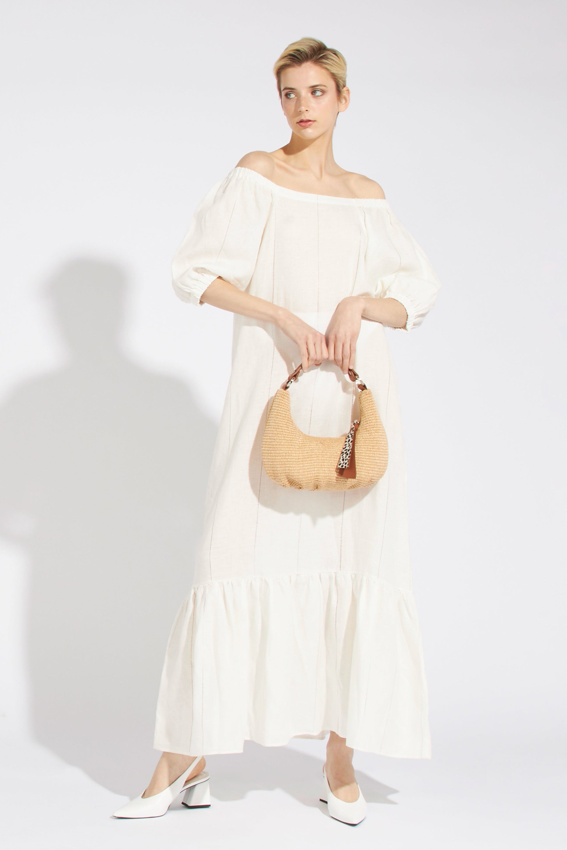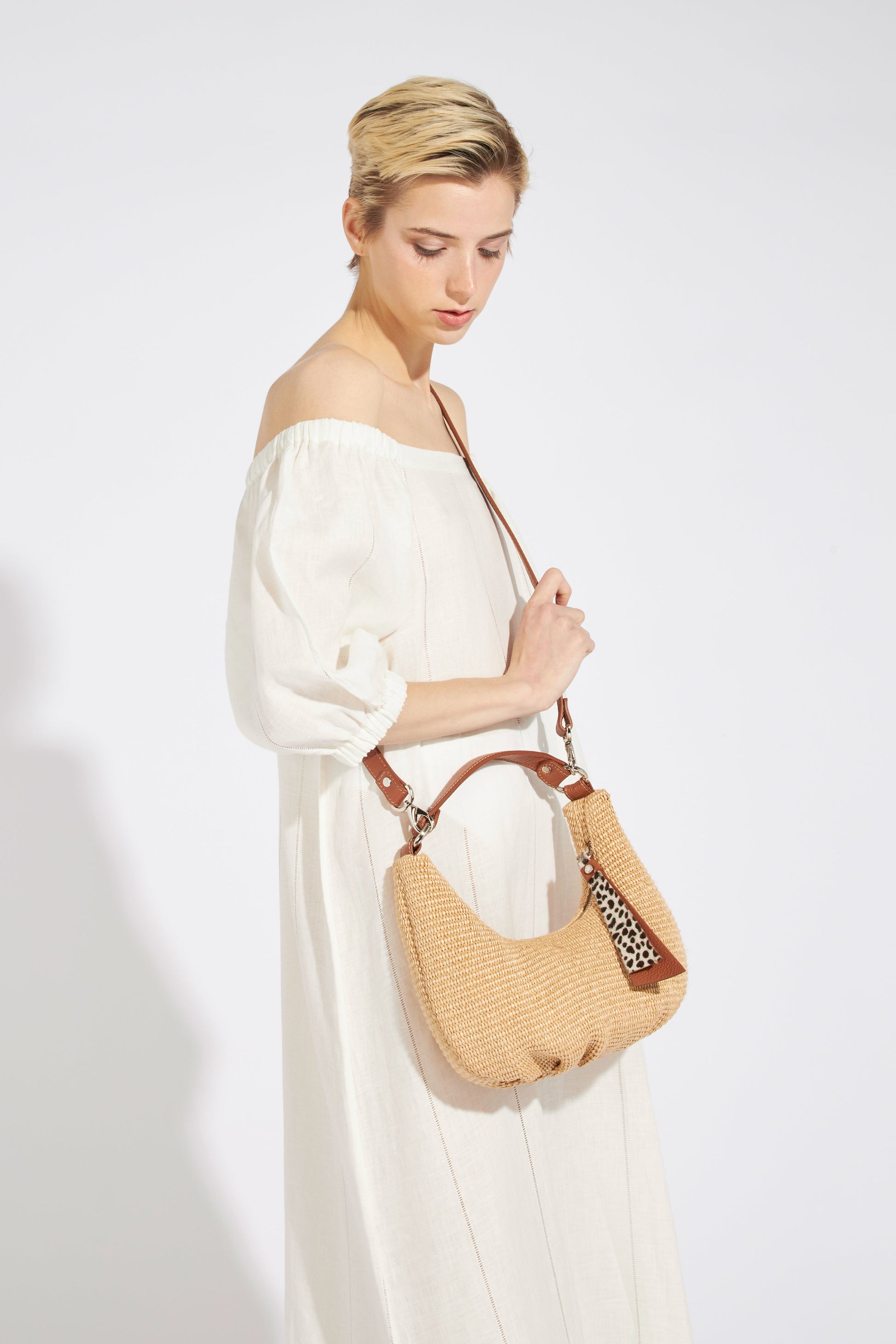 6040 - Beatrice is a shoulder bag made of fabric and calfskin crafted by Roberta Gandolfi.